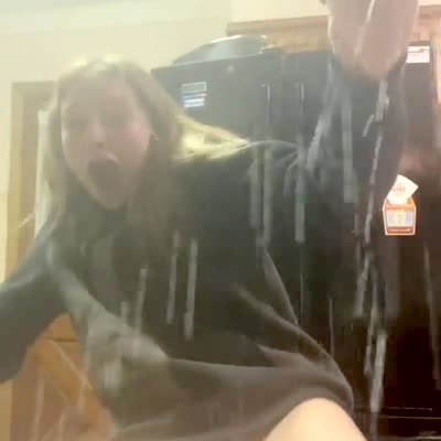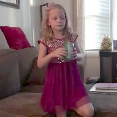 A teen girl says that the water in her water bottle tastes gross at school, then she opens it up to show that her brothers hid a hot dog in the water.