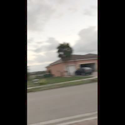 A teen boy flies a drone above his house. His mom walks through the front yard, and the drone flies into her face and crashes to the ground. Video from drone, no audio.