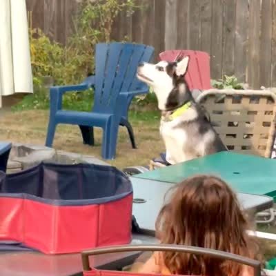 A man in a yard attaches a young girl's stuffed toy monkey to a drone and flies it high in the air and the young girl laughs. Around 0:42 the monkey falls off the drone and drops out of the sky and the young girl screams like it's a person falling to their death.