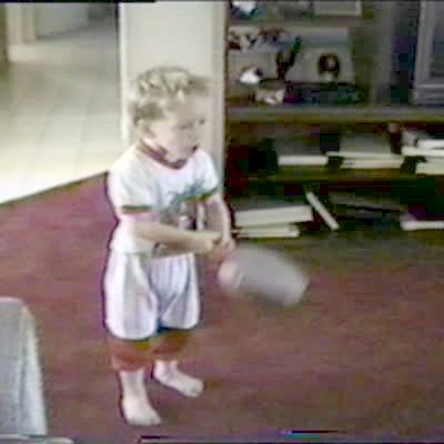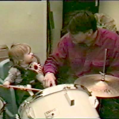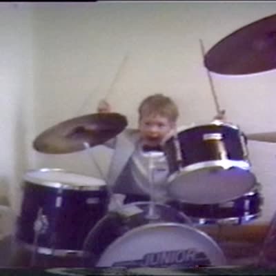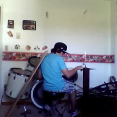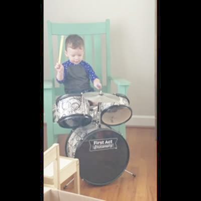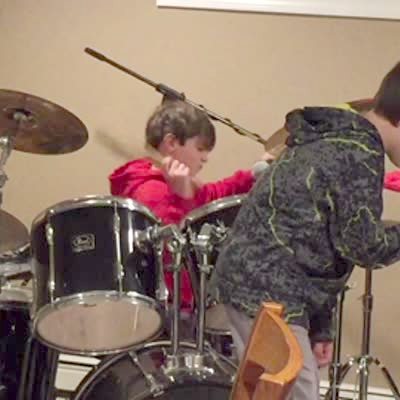 "Rim Shot At the Ready" Two brothers argue and one falls down. Other brother plays a rim shot on a drum set. Boys.