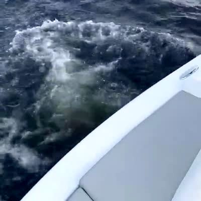 A woman dances to music on a boat until she loses her balance and falls over the edge into the water.