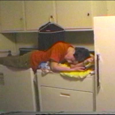A teen girl is stuck in the dryer. Her mom laughs at her while her dad films. When she gets out she flips off the camera.