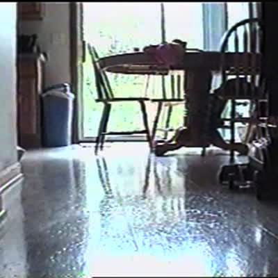 DUCK TREADMILL DUCK. Duckling joins boy on treadmill.