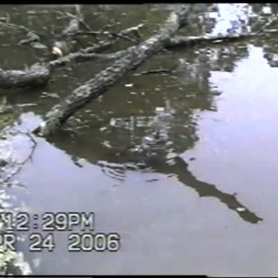 Catfish has a huge bullfrog in its mouth. Suddenly the frog gets away before it was eaten. Odd, animal escapes.