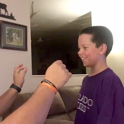 "Magic Trick Tot" A woman tells a tot boy to put a piece of paper in her fist in a kitchen. She shakes her hand and throws the paper over her shoulder, then laughs with the tot boy and shows him that it is gone. After a few rounds of this trick, the tot boy yells "oh my gosh."