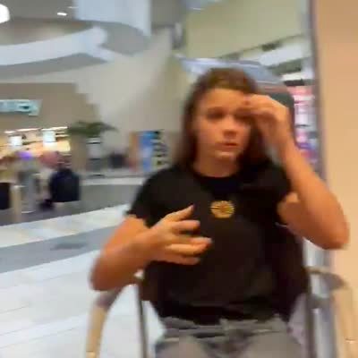A young girl at the mall panics as she prepares to get her ears pierced and repeatedly says, "I changed my mind!" When the women pierce the ears, the girl screams, then says, "Oh, it didn't hurt. I feel nothing!" She and her mom both laugh. Featured talent cleared only (the girl and her mother).