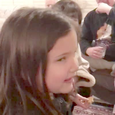 A young girl says she is not a booger eater to get on the good list with Santa, in the living room.