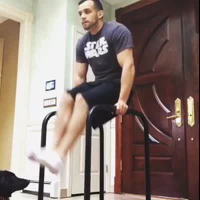 "Doggy Don't Do Stairs" A big dog puts the seat down on an electric chair and jumps in it. Then the chair takes him down the stairs. Then the chair takes him back up the stairs.