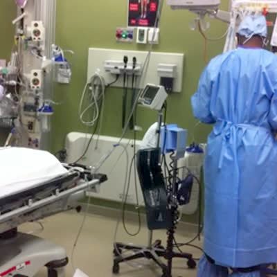 In a hospital emergency room, a man disguised as a doctor removes his surgical mask and surprise proposes to his nurse girlfriend. She drops her medical supplies in shock and excitedly says yes! Start at 45 seconds.