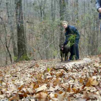 Man sets up camera to record proposal in woods, chocolate lab dog runs and knocks over camera. Engagement.