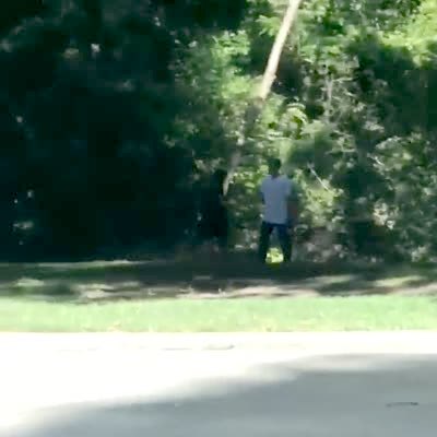 A man in his backyard proposes to his girlfriend. Meanwhile, the woman who holds the camera gets distracted by a raccoon and misses the actual proposal.