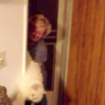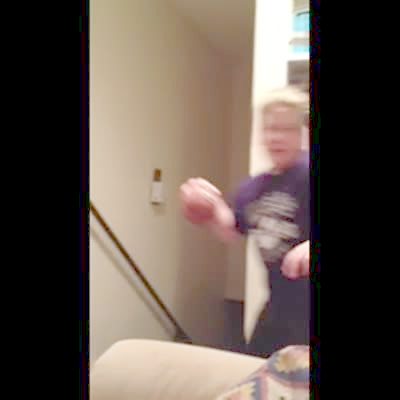 A girl comes home from school and gets scared by her parents. Good scream at 0:27.