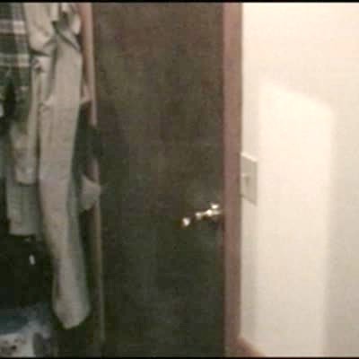 A woman puts on a mask and hides in a closet another woman walks in says "you're not scaring me" then screams as loud as she can. at :38