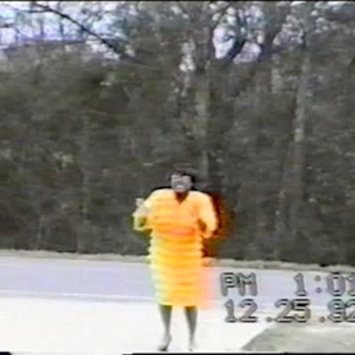 A woman, a boy, and a girl throw food to a goose on a farm. The goose chases the girl and the girl runs face-first into a tree. Short tails.