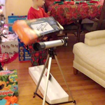 A young boy examines an empty telescope box on Christmas morning when he can't find the telescope he got as a present, even though the telescope is set up directly in front of him. He wonders if Santa Claus brought him an empty box until he puts his hand on the telescope and breaks it.