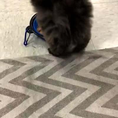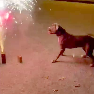 A dog shakes and jumps back with excitement each time his snack bag is popped open. Compilation of several videos.