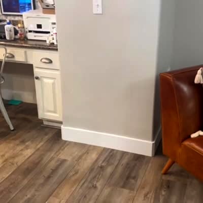 A woman in the house asks a dog if she wants to go for a walk and the dog lies down in her dog bed. When a man asks if she wants to go for a ride, the dog snaps her head towards him and gets up.