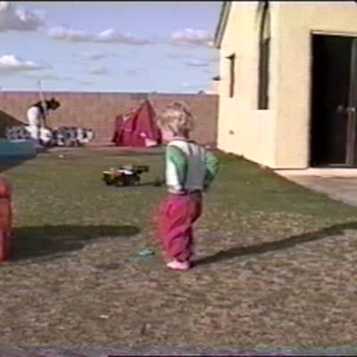 WINDY TUBE. Big expandable tube in backyard rolls over kid (thru Wind)
