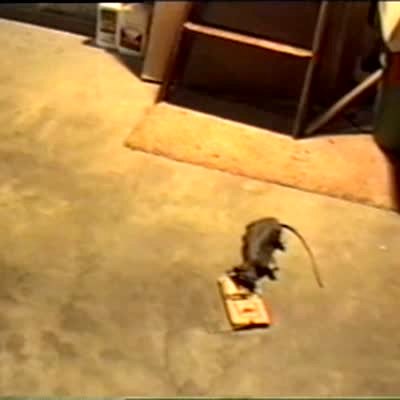 A few different times, a man tells people there's a dead rat in a bucket. People go up to look and a fake rat catapults / flies at them, surprising them. Practical joke