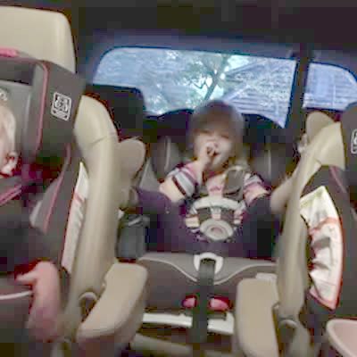 Twin tot boys argue over who farted in the car as they each say they were the one that farted.