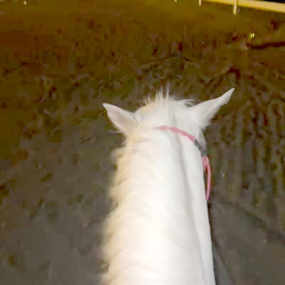 A horse runs through snow on a farm to get close to the woman behind the camera, then farts and runs away.