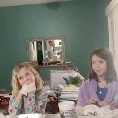 "Calorie Counting Kid" Young girl and her mother are looking into camera. Mom says that she looks awful. Girl says its just because she is fat. Girl says that if the mom exercises the fat will go away.