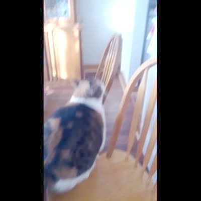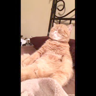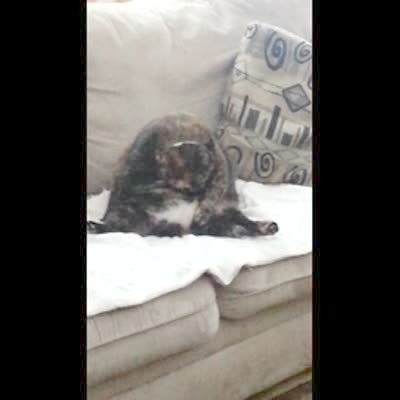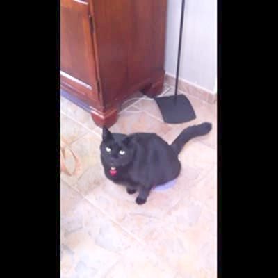 "Purr-Fect" Cat goes crazy. Fat cat makes a very weird/funny/strange noise. Snorts and licks its mouth.