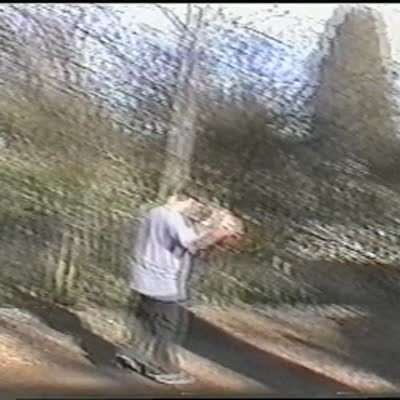 A woman trips and stumbles then falls in a driveway, as she says, "I'm so effing done. Just drive me over, world." Neighbor comes to help her and she says "I just tripped cause I'm running and I'm fat." Security footage.