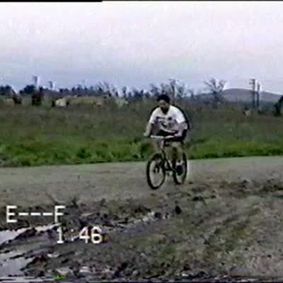 A man in overalls tries to get on a horse. He fails twice to put his foot in the stirrup. On his third try he stumbles and falls. He almost falls back into another horse. When the other horse is startled, it almost runs into the camerawoman.