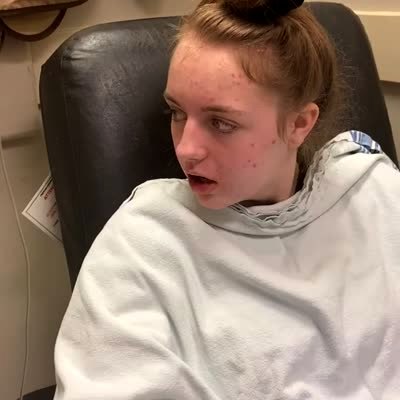 A teen girl asks her heart rate monitor if it wants to fight with her after a wisdom teeth removal at the dentist. When the monitor skips a beat she says "That's what I thought. Step back."