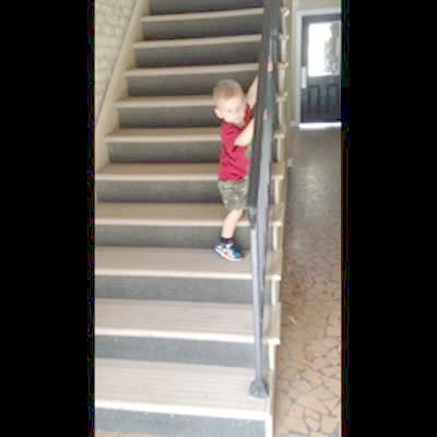 A tot boy takes rolls of toilet paper out of a closet and throws them over a baby gate and down a flight of stairs.
