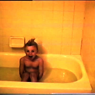 Boy imitates flipper in the bathtub, mimicking the dolphin's sounds