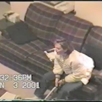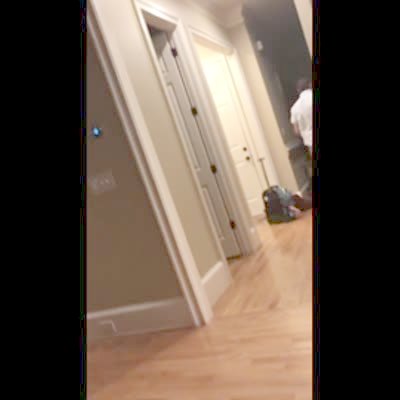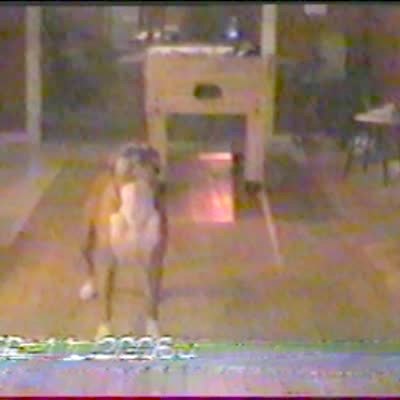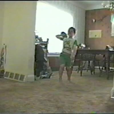 A man in the kitchen wears a virtual reality headset and plays a VR game. He runs straight into the cabinet. Security Footage. Music rights not cleared.