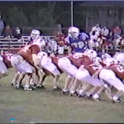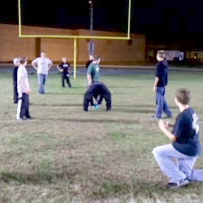 High school football game. Teen gets tackled when his jock strap is grabbed.