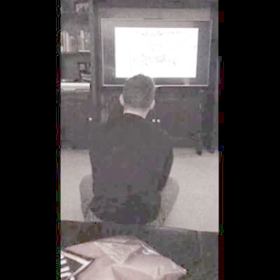 Senior man falls asleep in his chair while watching a football game. Grandson yells "Touchdown!" to wake Grandpa, he wakes up & celebrates.