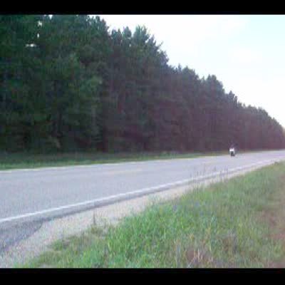 Man on motorcycle tries to do a trick, hits the brakes too hard and flips over the front of the bike on the highway. Short tail. Bonehead.