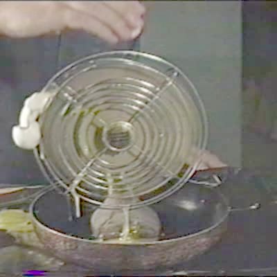 AA: Egg Crack. Eggs broken on fan to scramble them into pan.