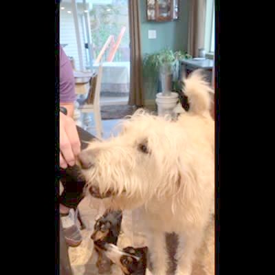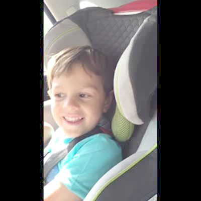 A man opens a grill on the deck to show young boys and a tot boy the baby squirrels nesting inside. The tot boy then asks "Are we gonna fry them" and his parents tell him no.