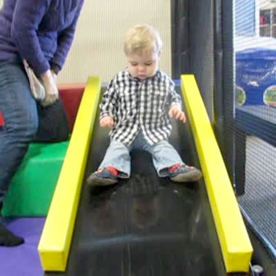 A tot girl in a high chair gapes and then begins laughing when her mother offers her Cheerios.