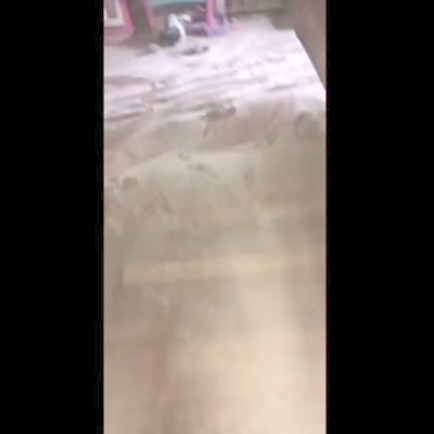 A tot boy and young girl cover themselves and a living room in baby powder. It floats in the air, and covers the floors. Their mom catches them and gasps repeatedly.