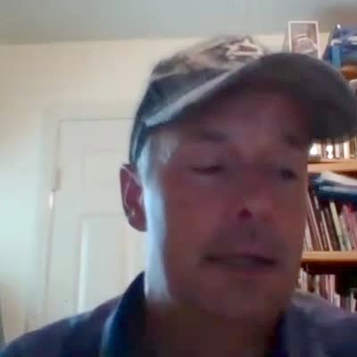 A man drops a large trophy for the Armed Forces Hockey tournament during a video conference and the other man participating gasp and cringe. Zoom.