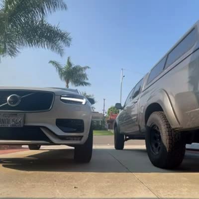 A man tries to drive a four-wheeler onto the back of a truck but he accidentally crashes into and breaks the back windshield. A woman gasps.