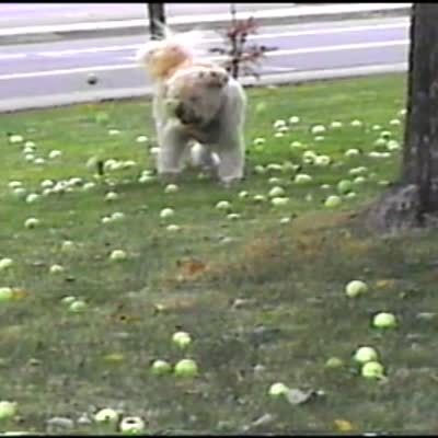 A Goldendoodle dog is trapped in curtains at home and breaks them while trying to get free.
