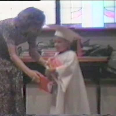 Little boy falls down altar stairs at graduation after he receives his diploma