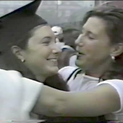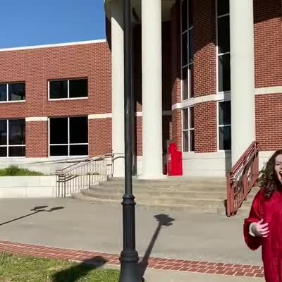 Girl kisses her graduation sister and they both fall backwards