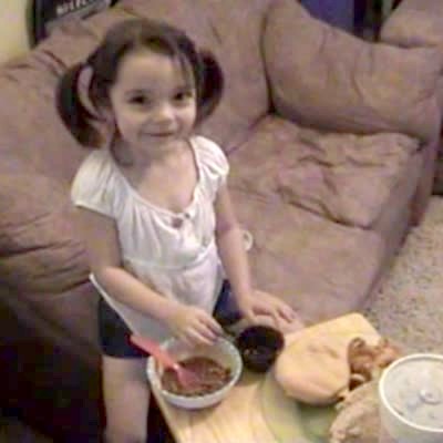 Mom (filming) asks tot daughter what she wants to be when she grows up. Tot says 'a cop.' Mom asks why, tot says 'because I like donuts!' Kids say.