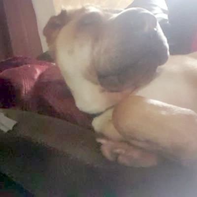 A boxer puppy dog sleeps in a woman's arms in a living room, then the dog growls and wakes up when someone puts a hot dog in front of her nose. Give Your Sleeping Dog A Treat