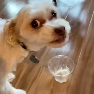 A dog barks at the cameraman as he reaches for an oreo.