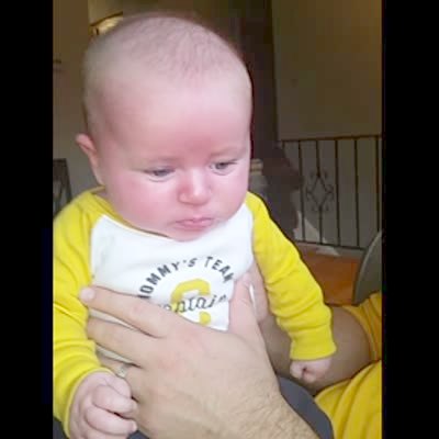 Baby boy poops, makes good facial expressions and grunts. Face turns really red.
