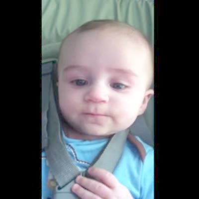 Close up of baby boy after he eats. He has a messy face & grunts like he's pooping.